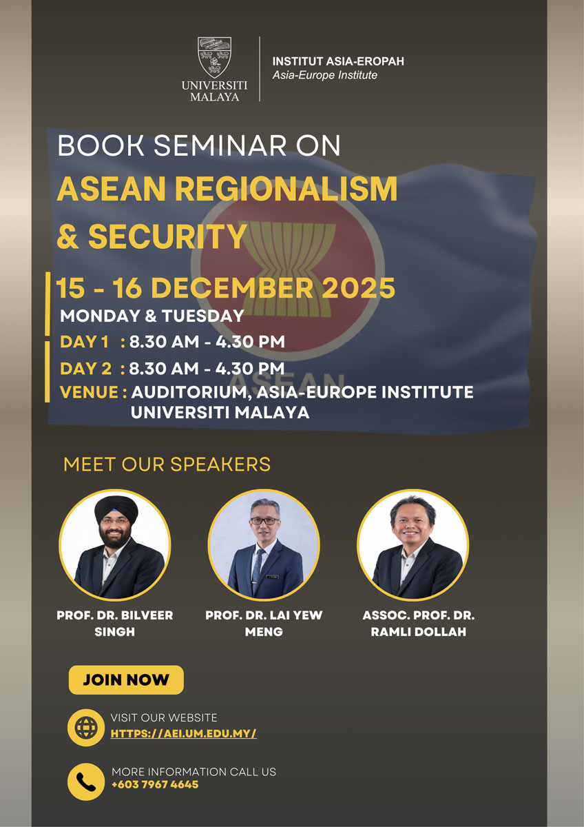 | 9:15 AM | Welcome Remarks by Distinguished Professor Dato' Dr. Rajah Rasiah, Executive Director, Asia-Europe Institute (AEI) |